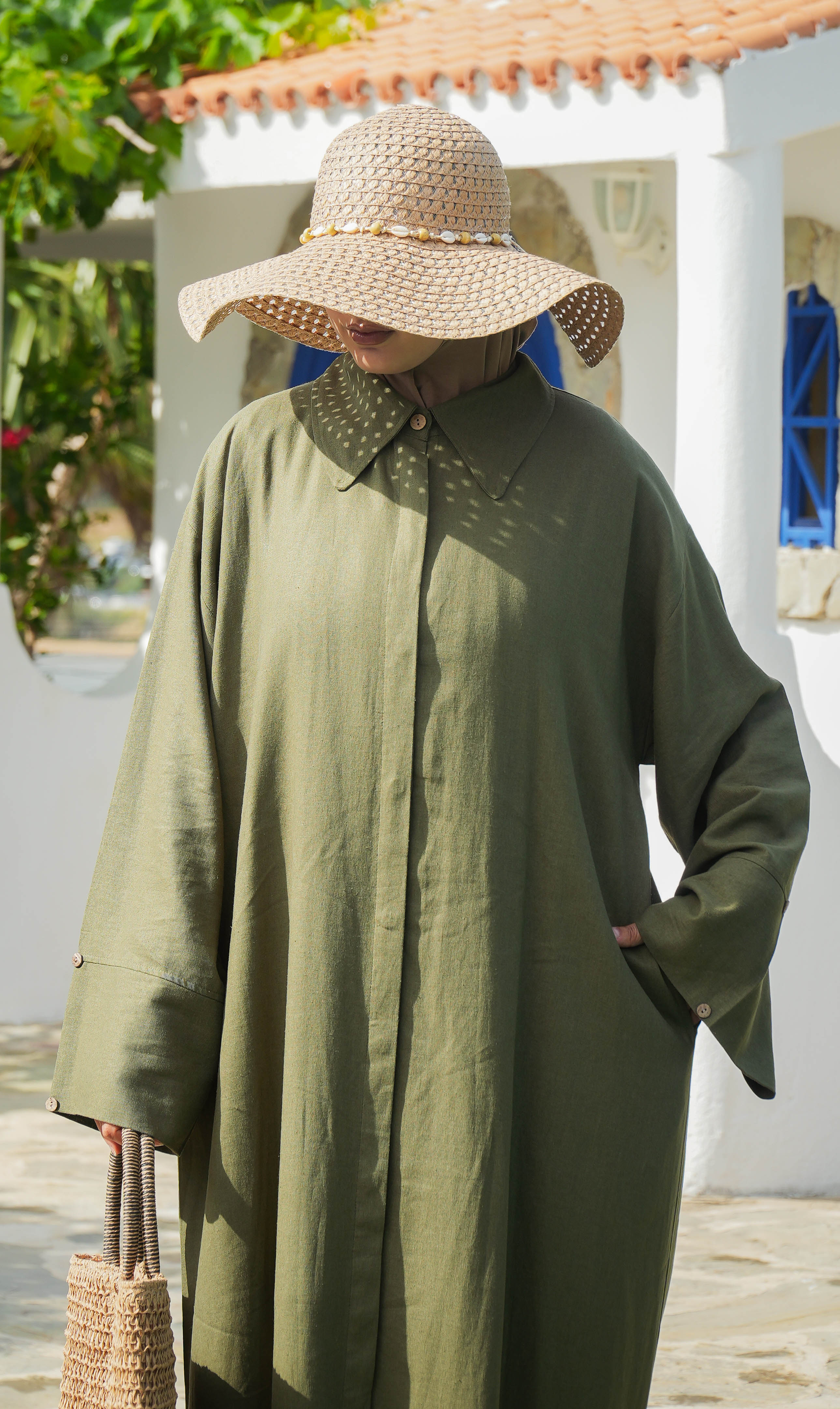 Elisa Linen Blouse Dress HERB – islamitischekleding.nl